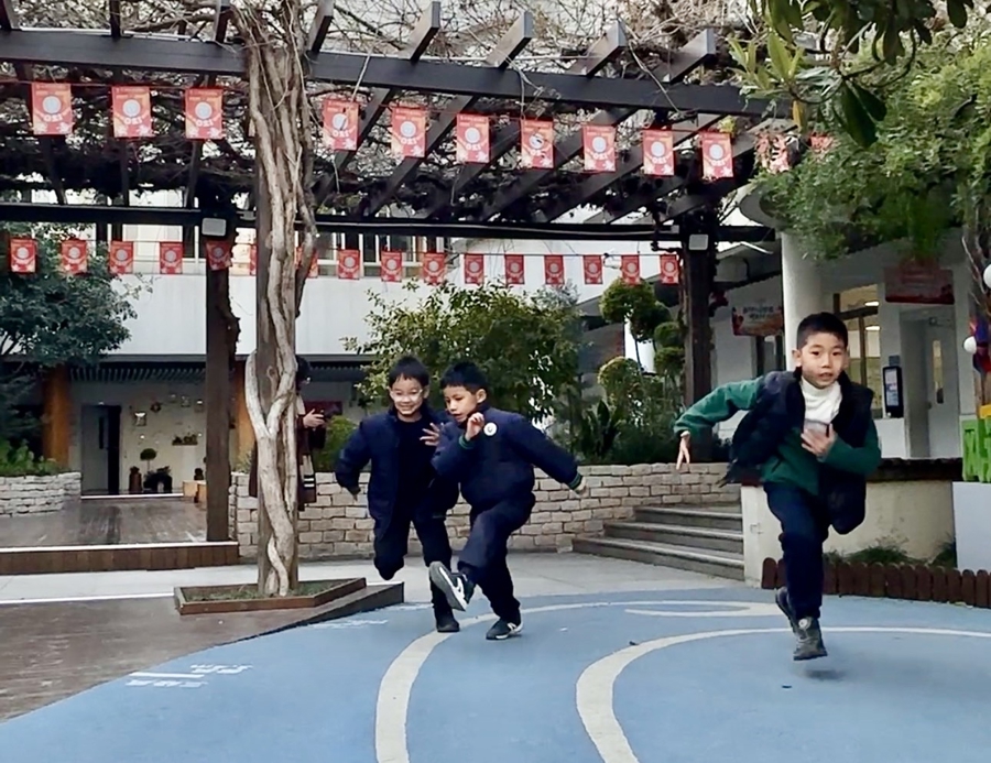 从“风空间”拓展开去,明强小学建成了全国首家气象公园。“风速跑道”上,孩子们惊讶地发现,没跑几步,飓风已经冲到了32.7米外的终点;孩子们也喜欢站在“人体日晷仪”上,以地面为“晷盘”,自己的身体为“晷针”,看着光影变化,验证古老的科学发现;龙卷风模拟装置前,伙伴们齐心协力摇动手柄,欢呼声中,“水龙卷”出现。