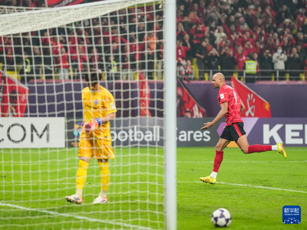 11月25日,成都蓉城队球员费利佩进球后庆祝。新华社记者 王曦 摄