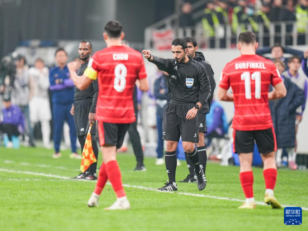 11月25日,主裁判在回看视频助理裁判后判给成都蓉城队点球。新华社记者 王曦 摄