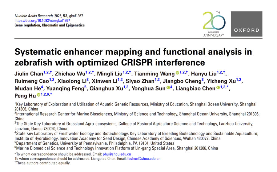 近日,上海海洋大学水产与生命学院/水产生物育种中心胡鹏教授、陈良标教授团队在国际知名分子生物学期刊《核酸研究》(Nucleic Acids Research)上发表了关于鱼类非编码调控的重要研究进展。